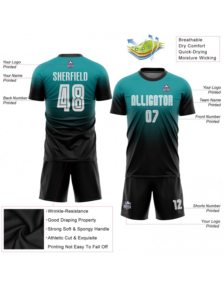 Best Pro Custom Aqua White-Black Sublimation Fade Fashion Soccer Uniform Jersey